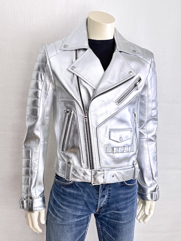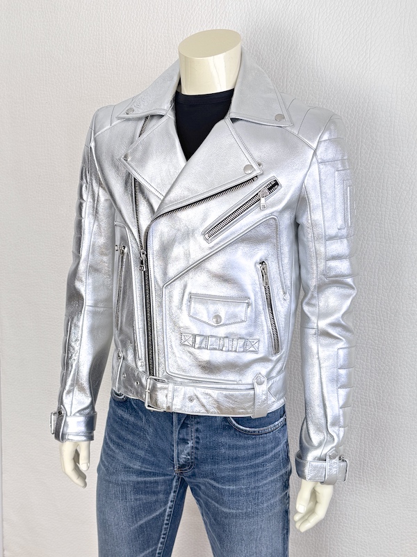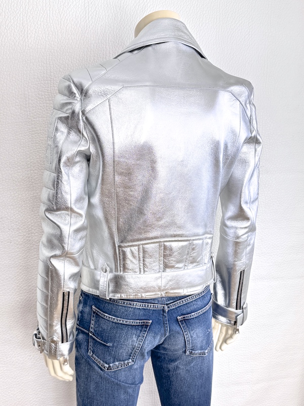 Balmain Runway Silver Metallic Leather Biker Jacket Lambskin Sz. IT46 – US36