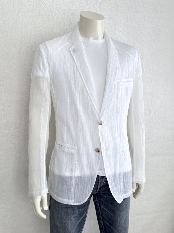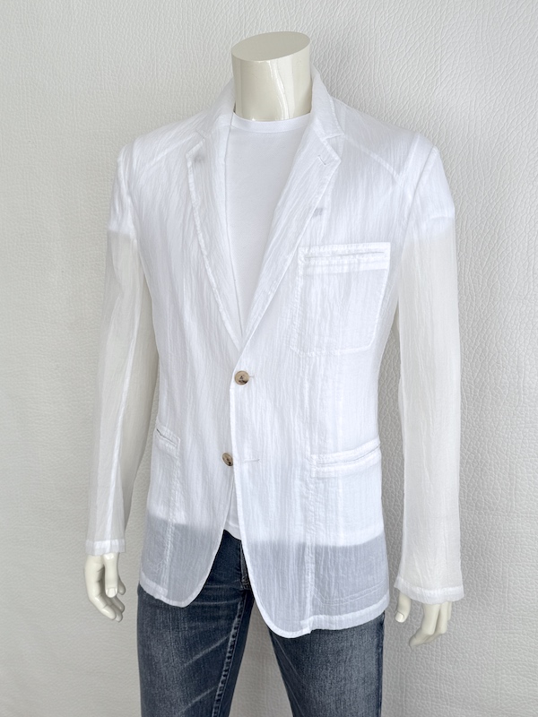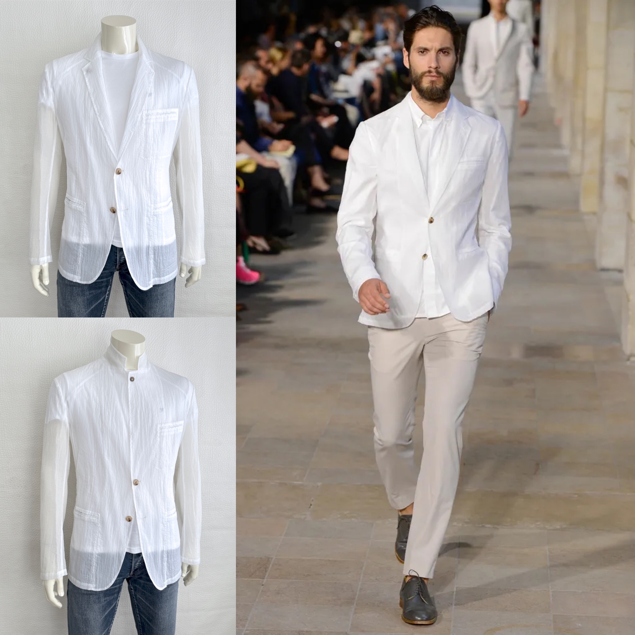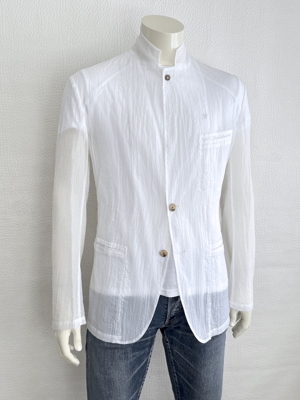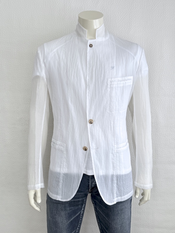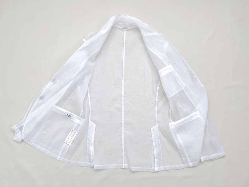 Hermès White Deconstructed Blazer Ultra Lightweight Mao Collar Runway Piece Sz. IT52