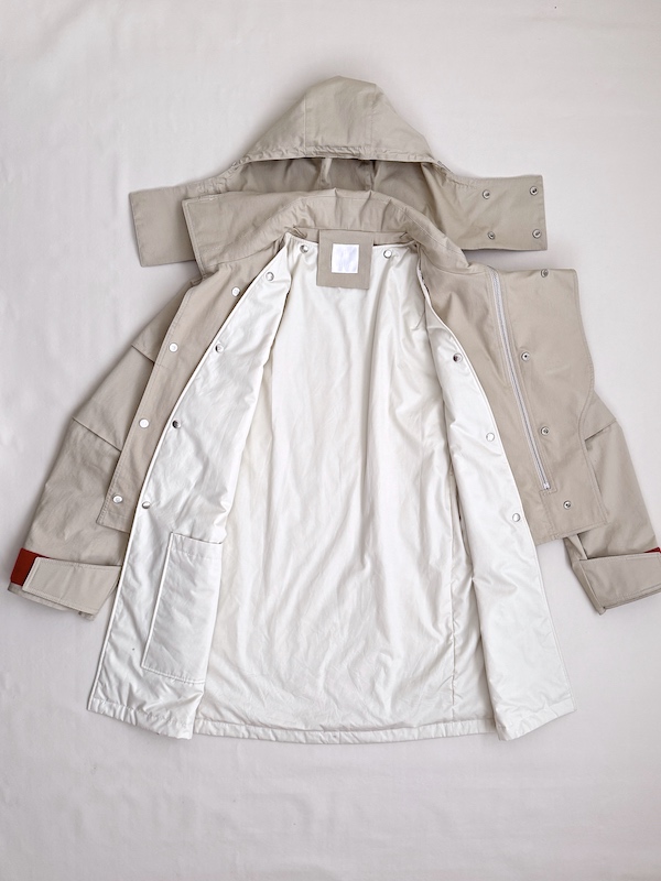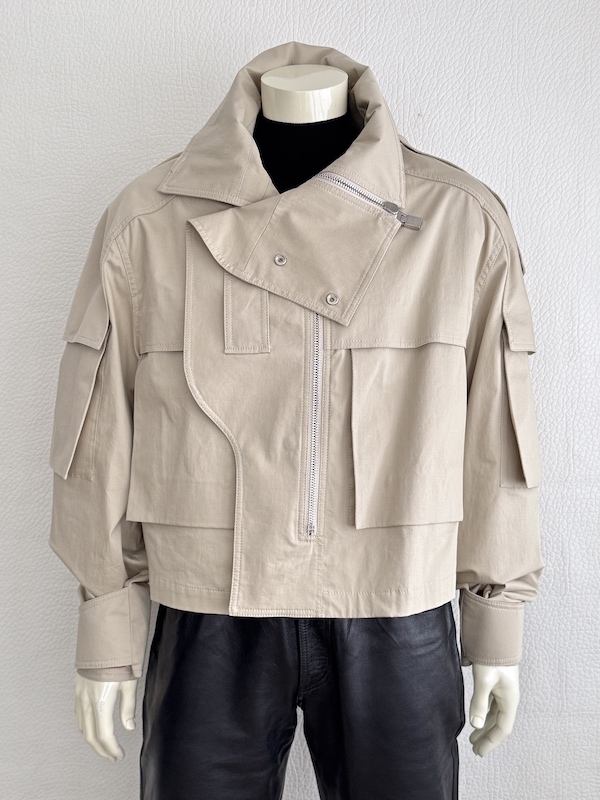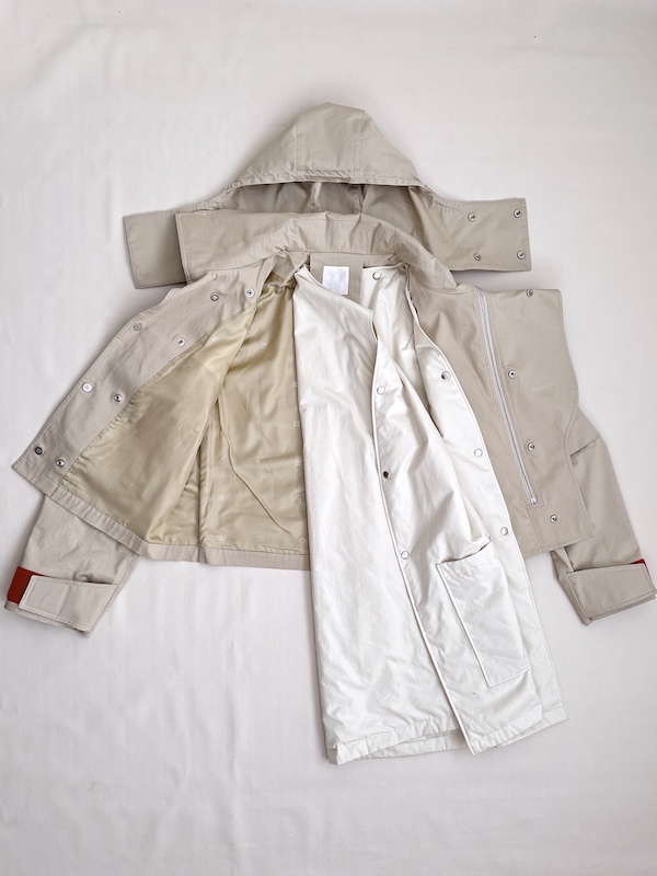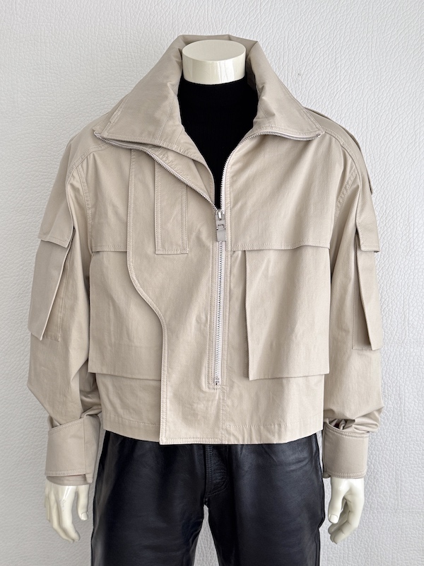 Unique and versatile 2-in-1 design by Givenchy. This piece can be worn as a full-length coat or transformed into a cropped jacket by removing the lower panel. The front closure can be styled zipped straight or asymmetrically for a bold look. A standout garment with adjustable proportions and a distinctive silhouette.